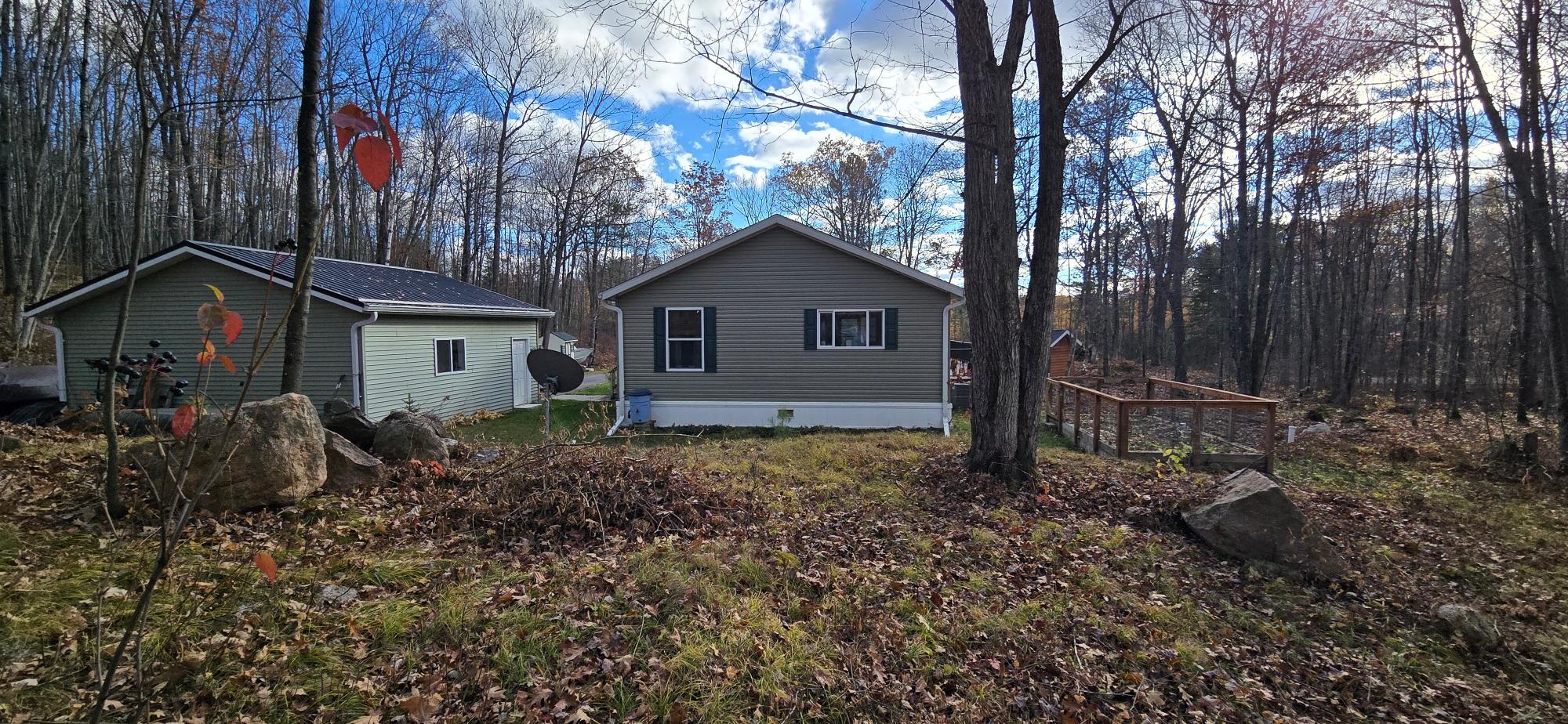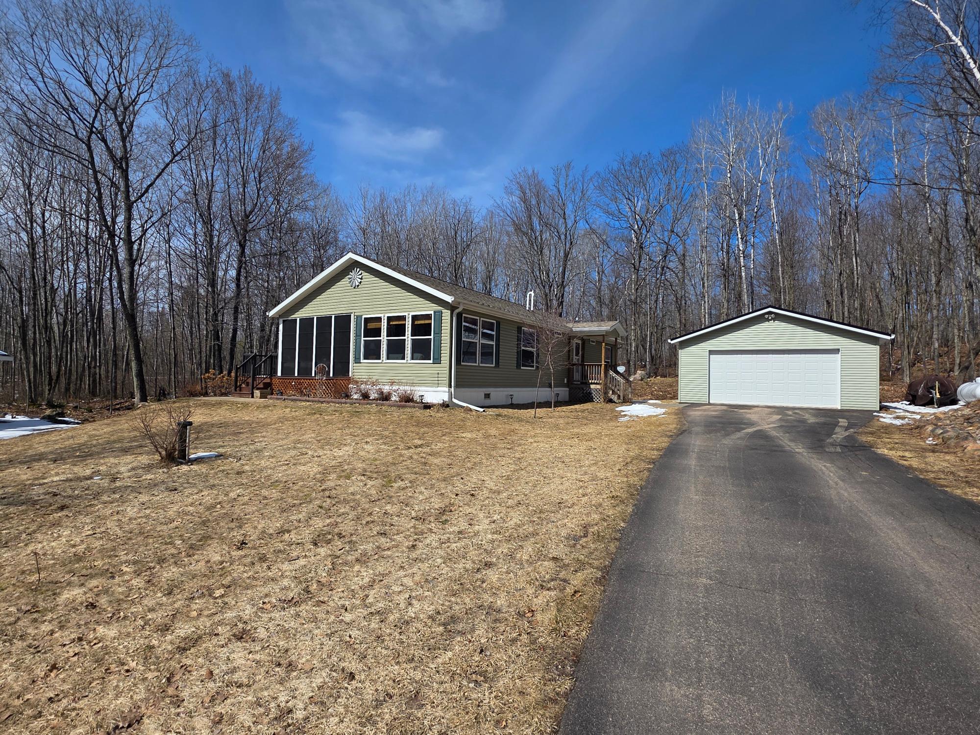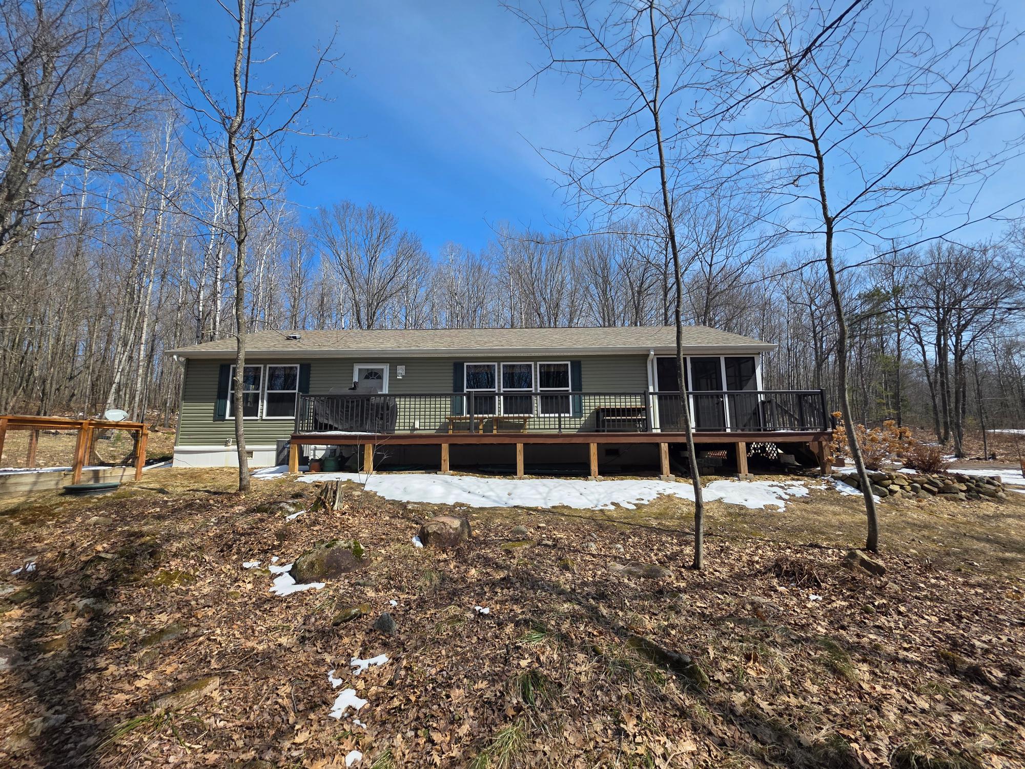 COUNTRY SECLUSION IS CALLING! This property is an outdoor enthusiast's paradise. The home features 2 bedrooms, 2 baths, a large open living room, an eat-in kitchen with plenty of cabinets, an attractive 3-season room, and a bonus room off the primary bedroom that offers many options such as a sitting room or sunroom. There is a covered entry porch and a huge deck overlooking the side yard. A detached 24x24 garage and a picturesque storage shed to accommodate your storage needs. As an added bonus there is an awesome, exterior, free-standing wood-fired Sauna building. The home sits on over 3 acres of rolling woodlands that adjoin hundreds of acres of Oneida County Forest land. You can snowmobile and ATV/UTV right from your blacktop driveway. Approximately an 1/8 mile down the dead-end road is Perch Lake Park (Oneida County Park System) offering lake access to Perch Lake via a public dock, picnic area, pavilion, cross-country ski/snowshoe/bike trails and a boat launch just a short distance away. What more could you want?!