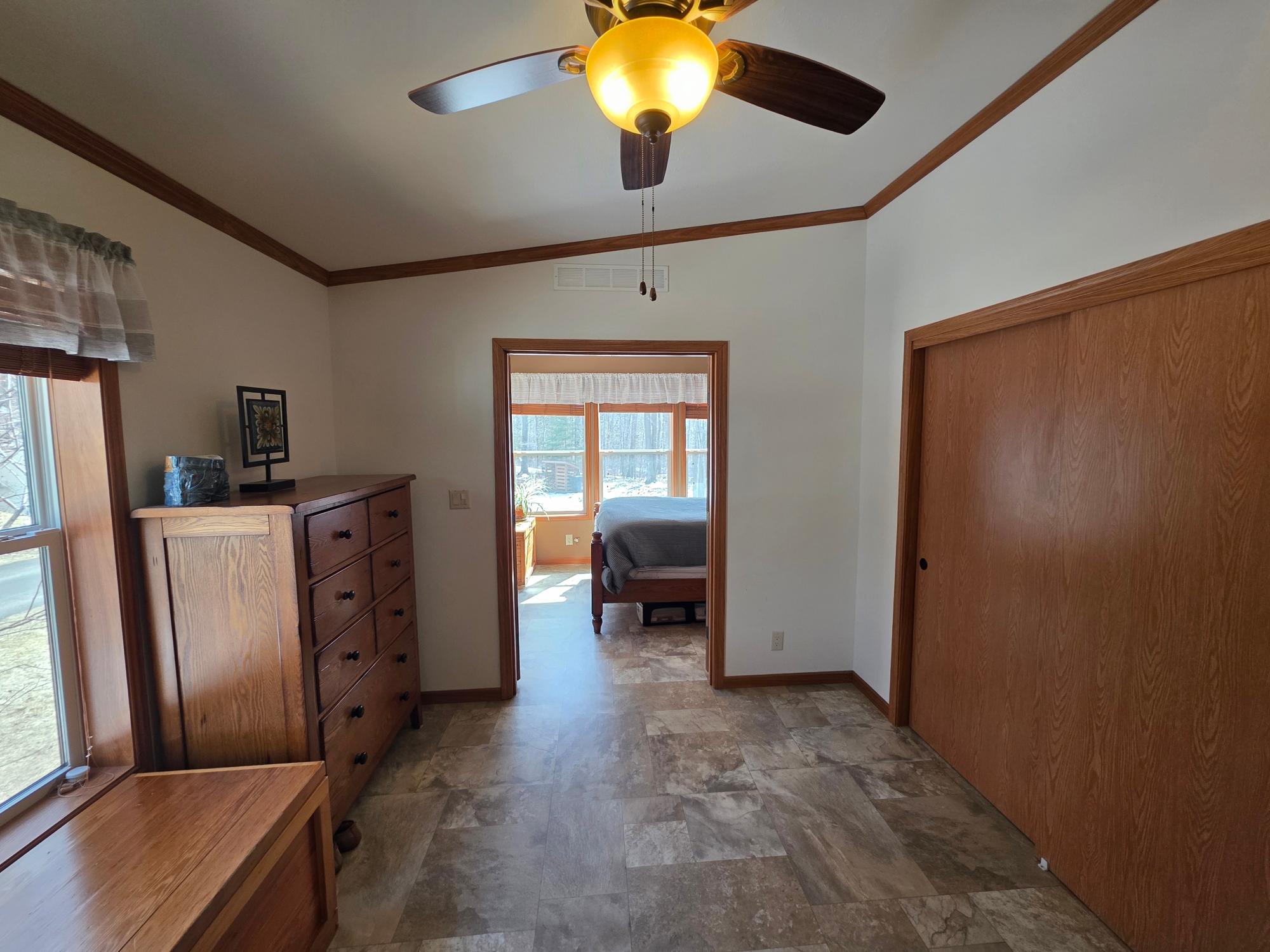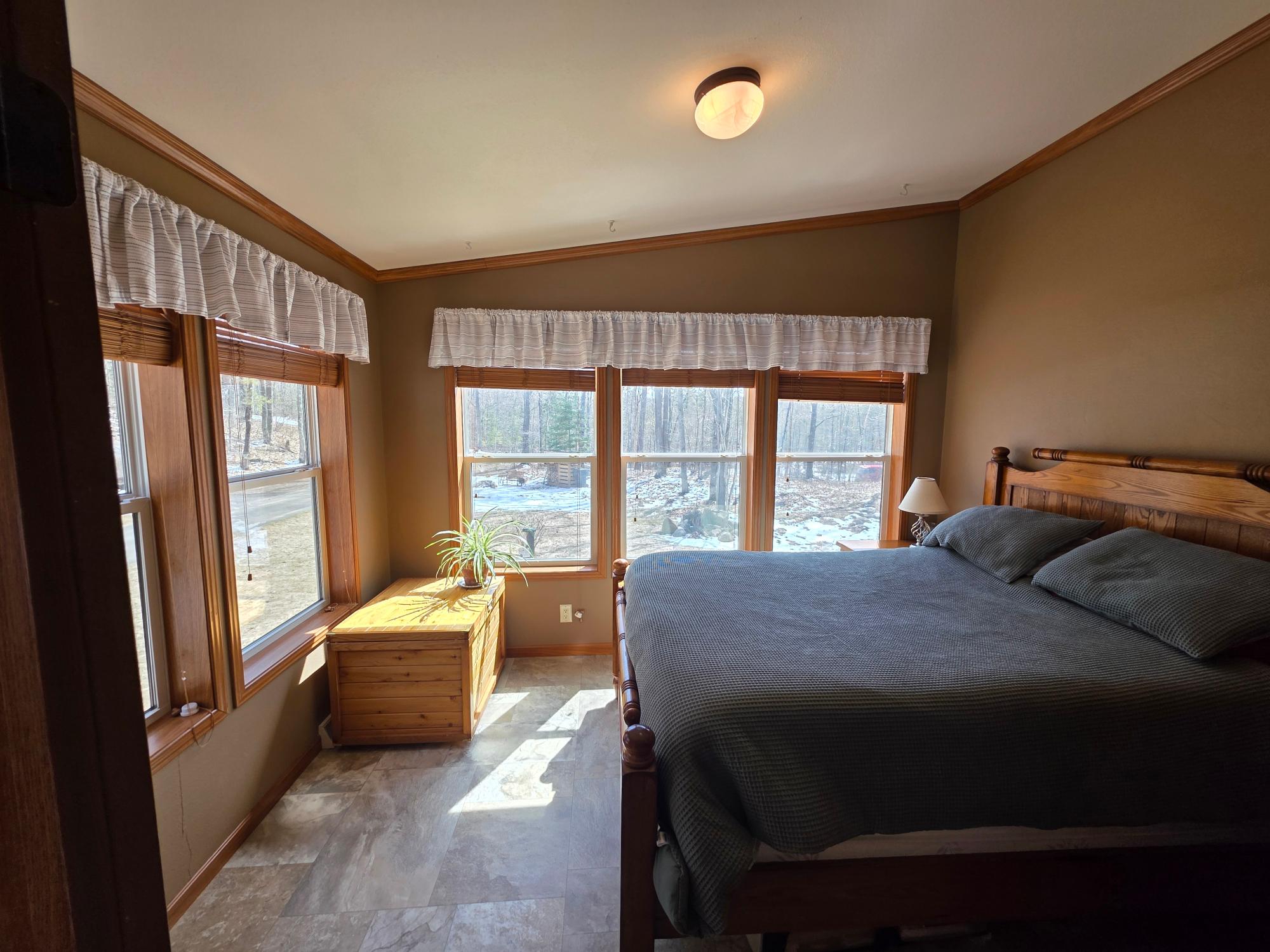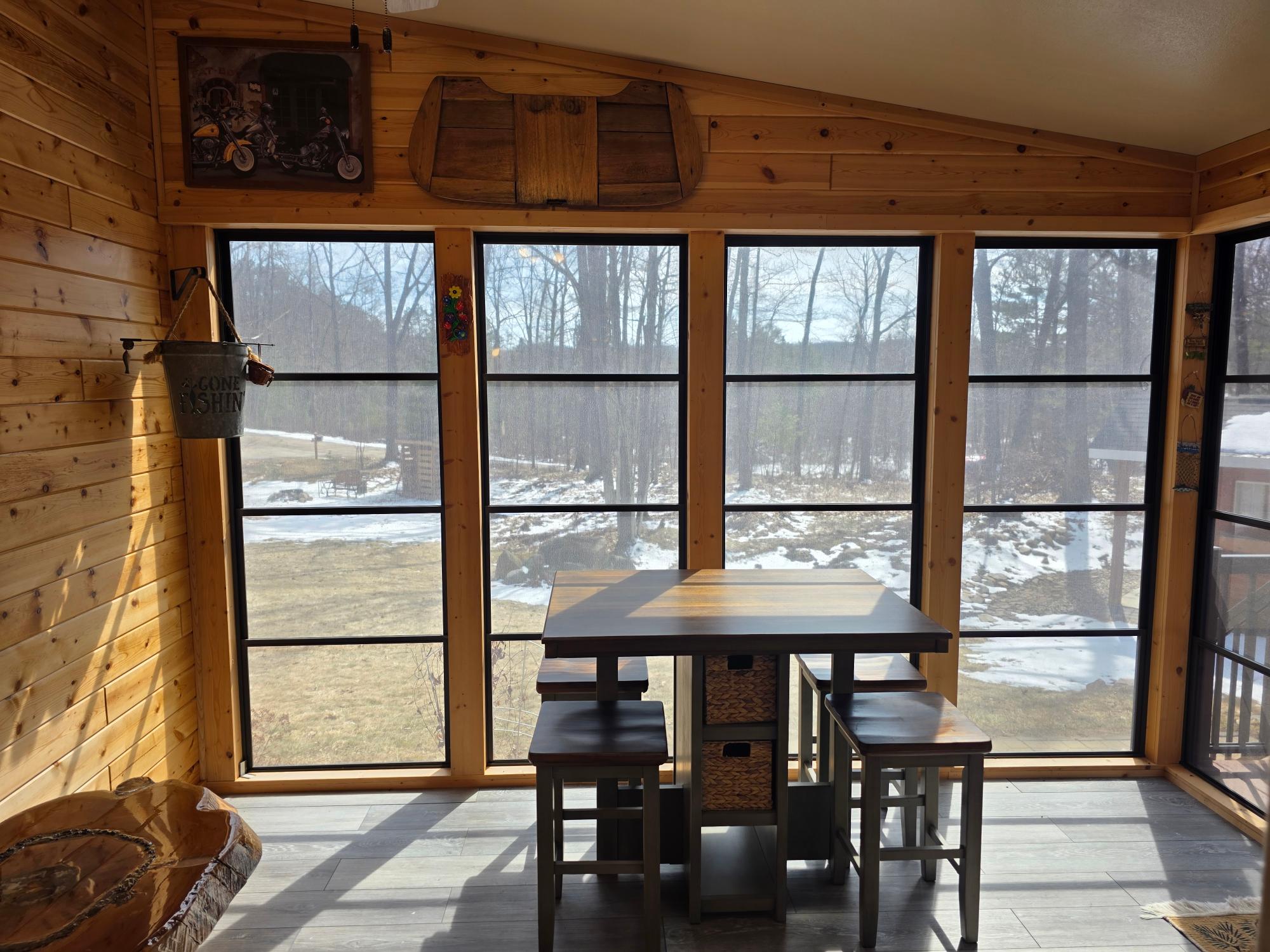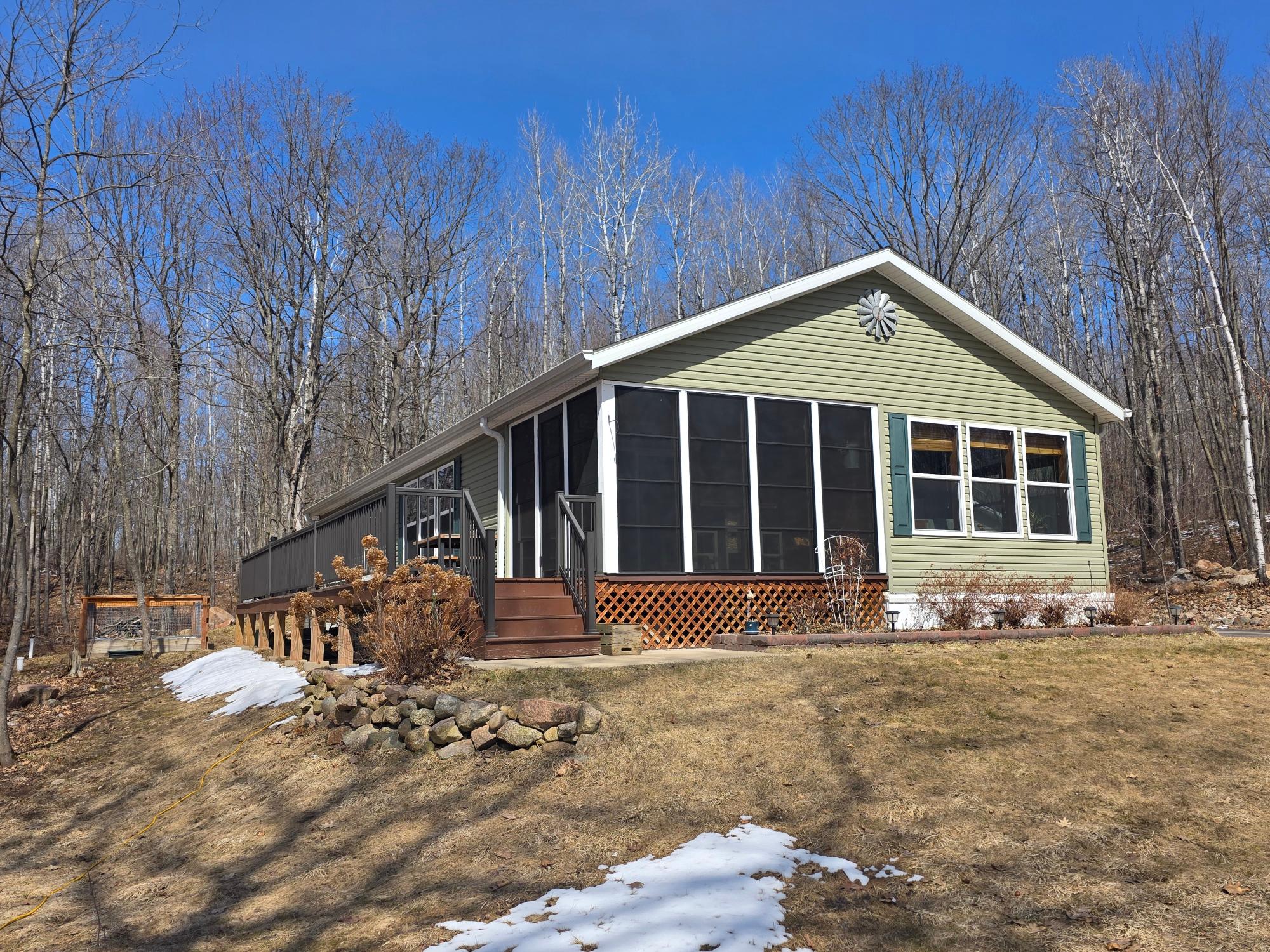 COUNTRY SECLUSION IS CALLING! This property is an outdoor enthusiast's paradise. The home features 2 bedrooms, 2 baths, a large open living room, an eat-in kitchen with plenty of cabinets, an attractive 3-season room, and a bonus room off the primary bedroom that offers many options such as a sitting room or sunroom. There is a covered entry porch and a huge deck overlooking the side yard. A detached 24x24 garage and a picturesque storage shed to accommodate your storage needs. As an added bonus there is an awesome, exterior, free-standing wood-fired Sauna building. The home sits on over 3 acres of rolling woodlands that adjoin hundreds of acres of Oneida County Forest land. You can snowmobile and ATV/UTV right from your blacktop driveway. Approximately an 1/8 mile down the dead-end road is Perch Lake Park (Oneida County Park System) offering lake access to Perch Lake via a public dock, picnic area, pavilion, cross-country ski/snowshoe/bike trails and a boat launch just a short distance away. What more could you want?!